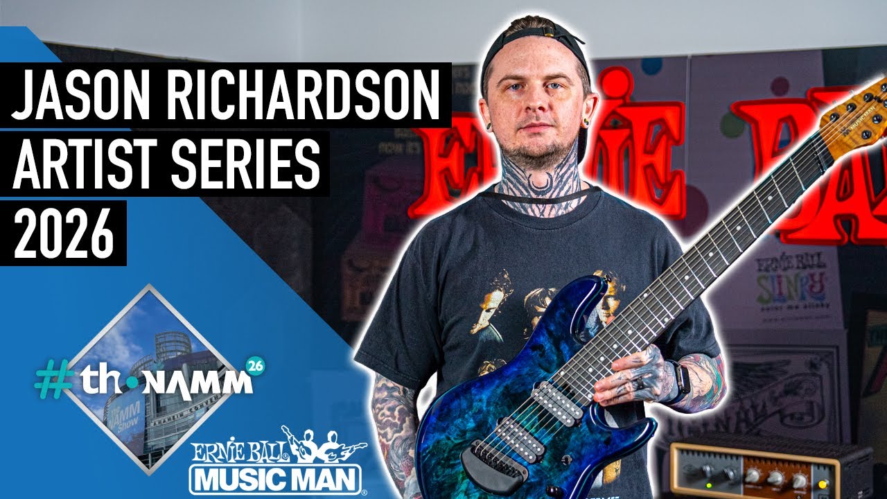 Guillaume met All That Remains guitarist Jason Richardson at #thoNAMM26 with the newest additions to his signature guitar lineup with Ernie Ball Music Man. 8 string and new colourways - also the first Cutlass to feature a fanfret neck.