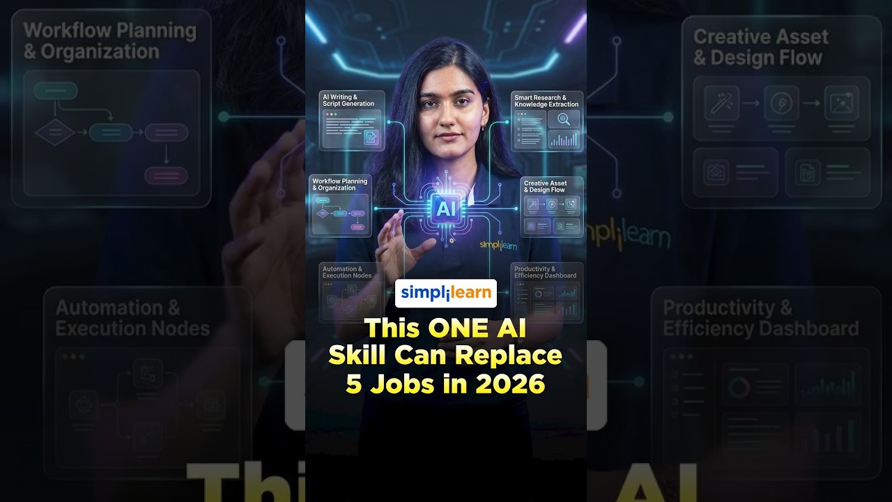 In this #Shorts video on This One AI Skill Can Replace 5 Jobs in 2026 by #Simplilearn, we explore the power of AI automation and tool integration. The key skill is learning how to connect and orchestrate multiple AI tools to automate workflows. Instead of using tools separately, you can combine them for content creation, data analysis, coding, and business automation. This video explains how AI workflows can replace repetitive tasks across multiple job roles. You will learn how to use APIs, automation platforms, and prompt engineering to build efficient systems. This skill is in high demand for developers, marketers, and business professionals. It helps improve productivity, scalability, and efficiency. The video also highlights real-world use cases of AI-driven automation systems. If you want to stay relevant in the AI era, this skill is essential. Watch this quick overview to learn how to make AI tools work together in 2026.