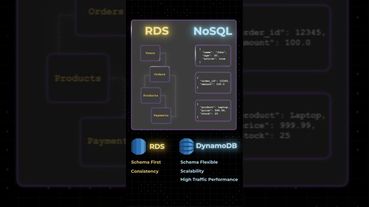 Confused about choosing between Amazon DynamoDB and Amazon RDS for your next cloud project? In this video, we break down the key differences between DynamoDB (NoSQL) and RDS (relational SQL), focusing on use cases, performance, scalability, cost, consistency models, and much more.