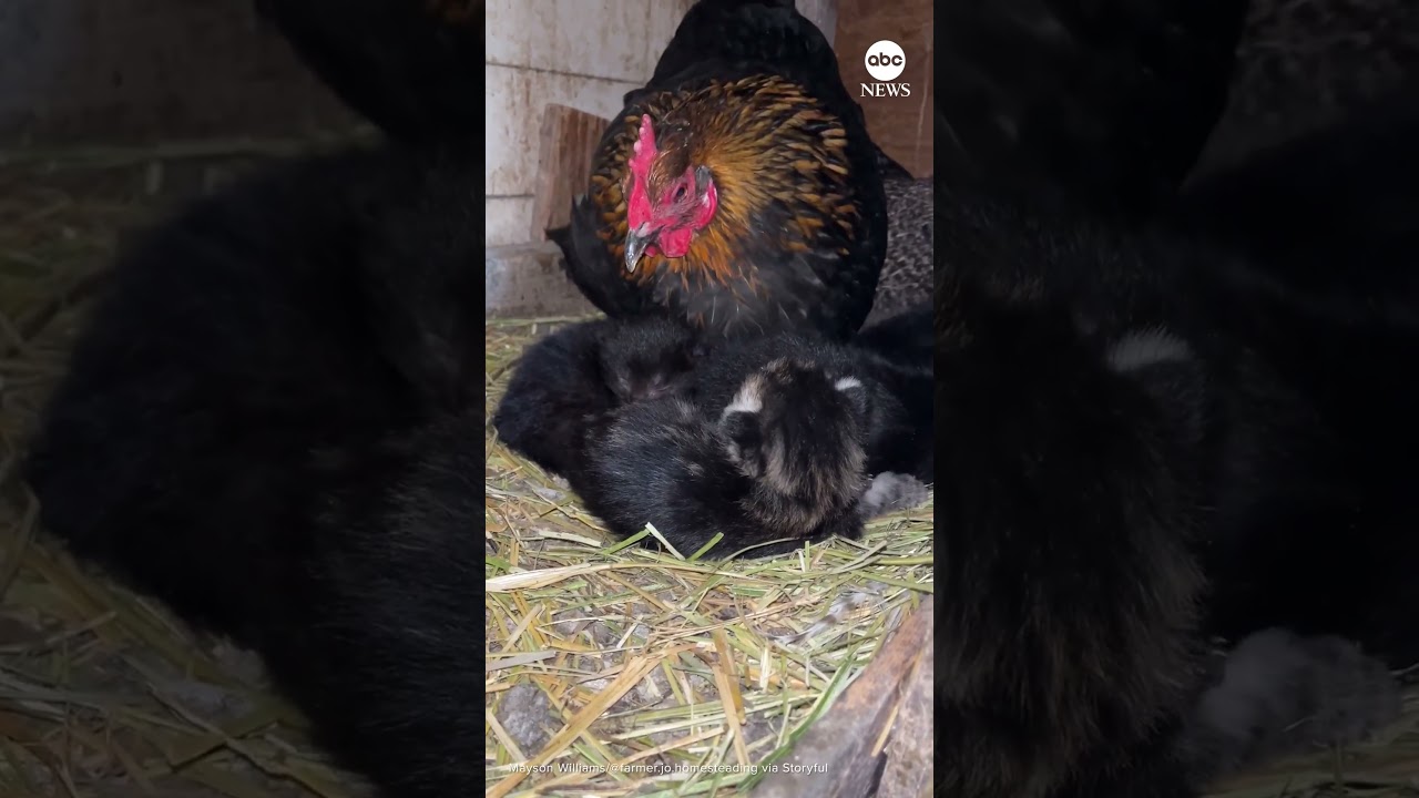 Hens help raise kittens after mama cat gives birth in chicken coop