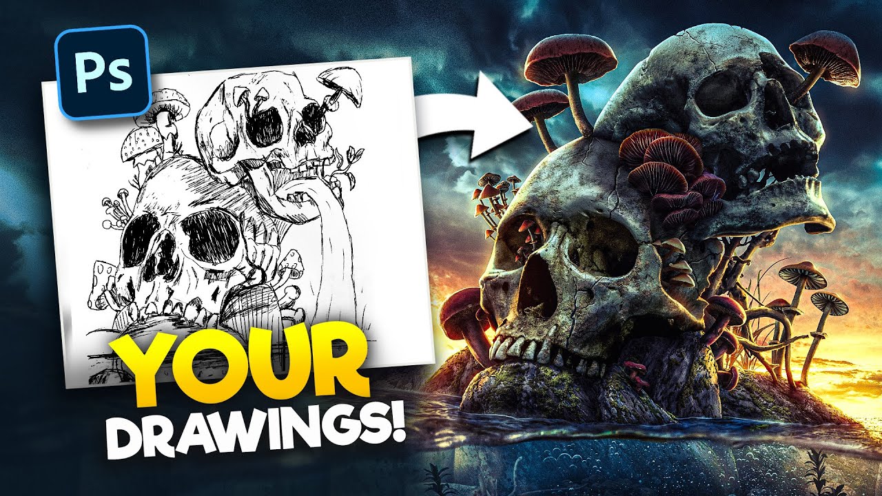 In this new episode of #realistified! I'm turning YOUR #drawings into realistic artwork using #photoshop! This time I'm doing Skull Island, an interesting take on the Grom Reaper, and a mystical galaxy mind! Like this series? Make sure to share it with your friends!