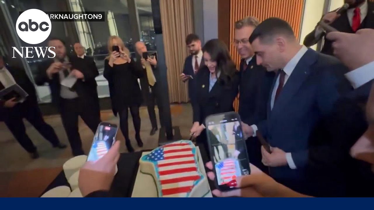Republicans cut Greenland-shaped cake with American flag at Kennedy Center party
