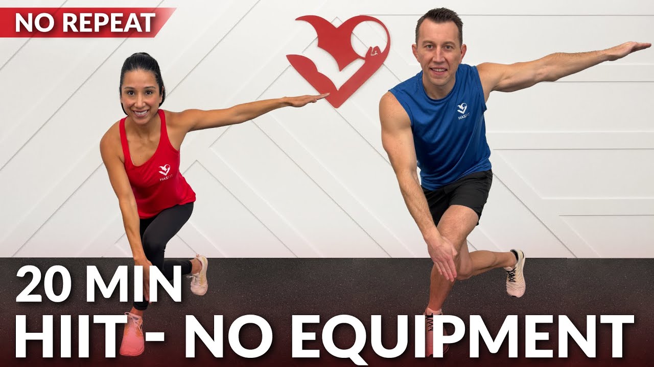 20 Min HIIT Workout - Full Body No Equipment & No Repeats at Home without Weights for Fat Loss